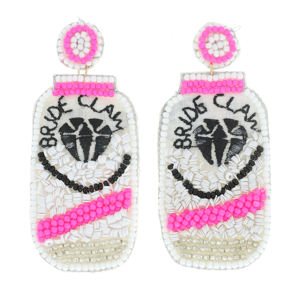 Hard Seltzer Bride Claw Seed Bead Drop Earrings - Hen Party Bachelorette Party Bride To Be Jewelry