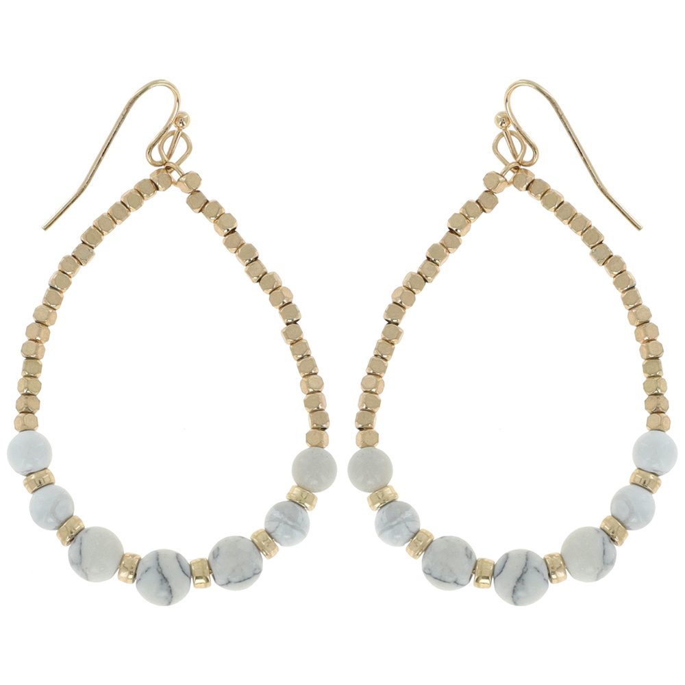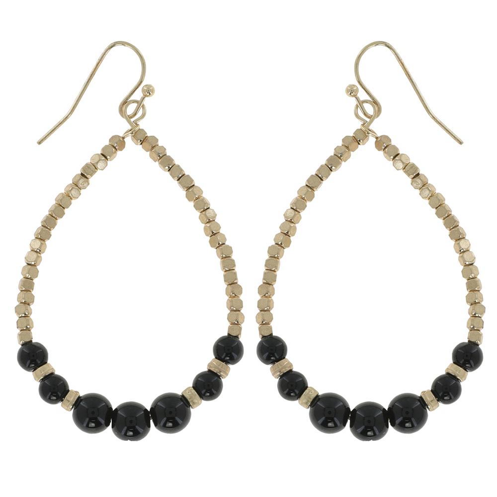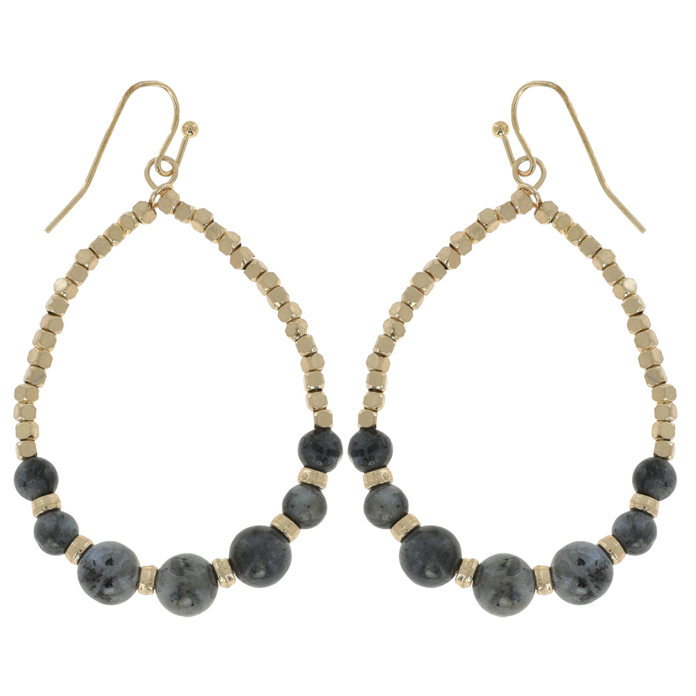 TEARDROP NATURAL GEMSTONE MULTI BEAD DANGLE HOOK EARRINGS