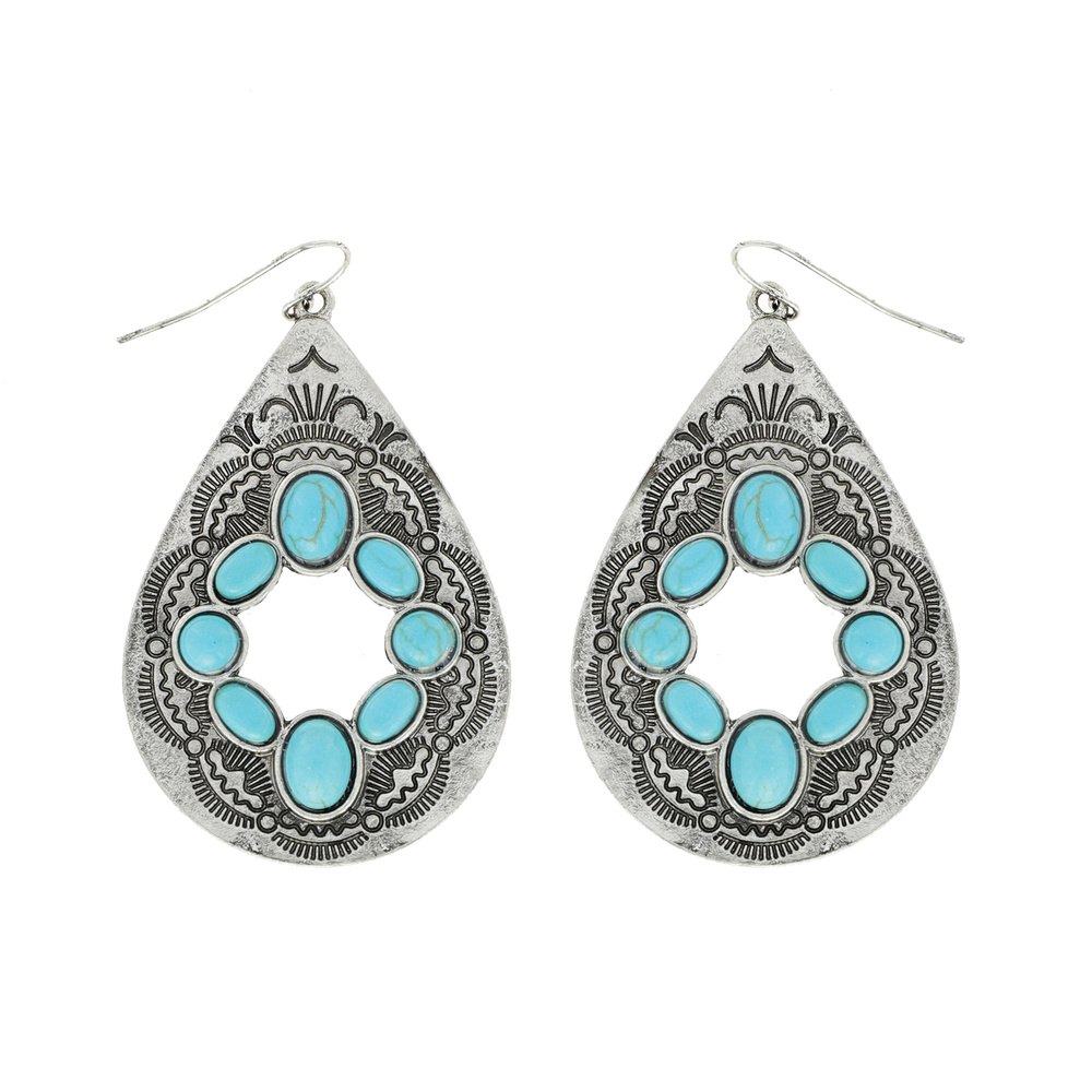 Teardrop - Vintage Western Style Semi Stone Inlay Fish Hook Dangle Earrings