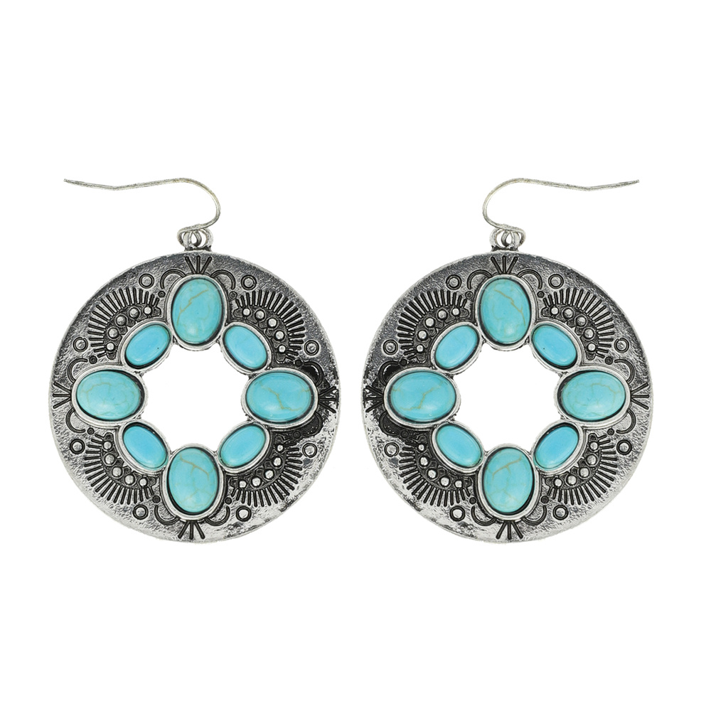 CIRCLE - VINTAGE WESTERN STYLE SEMI STONE INLAY FISH HOOK DANGLE EARRINGS