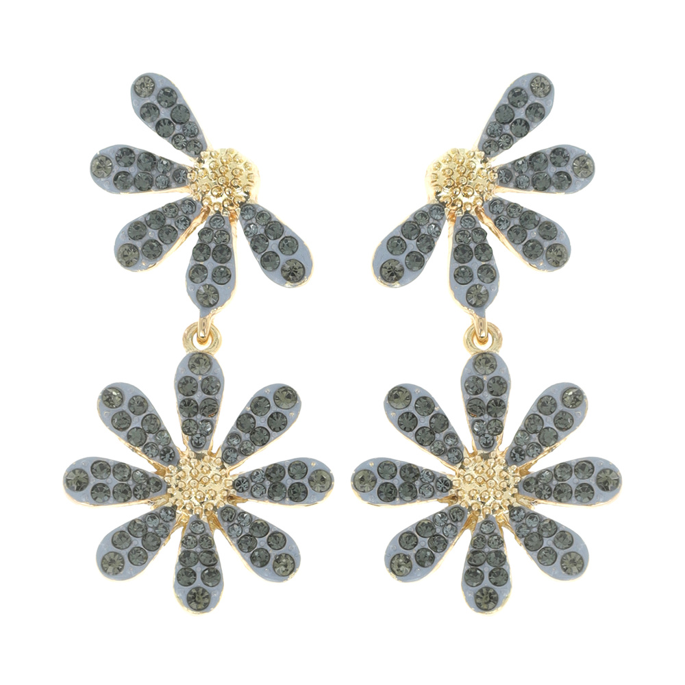 2 Tier Crystal Pave Daisy Flower Double Drop Earrings