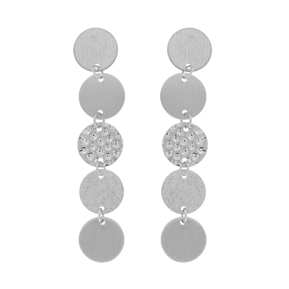 Boho Style Textured Metal Geometric Long Drop Post Disc Earrings