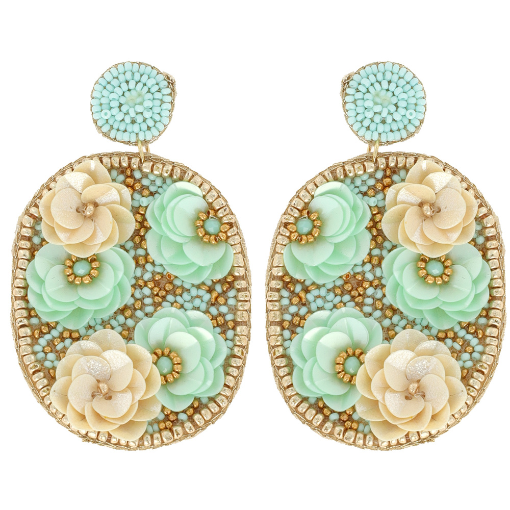 CIRCULAR 2-TIER SEQUIN FLOWER BOUQUET SEED BEAD DROP EARRINGS