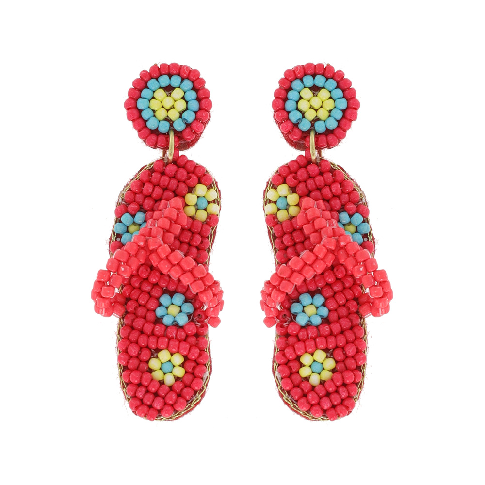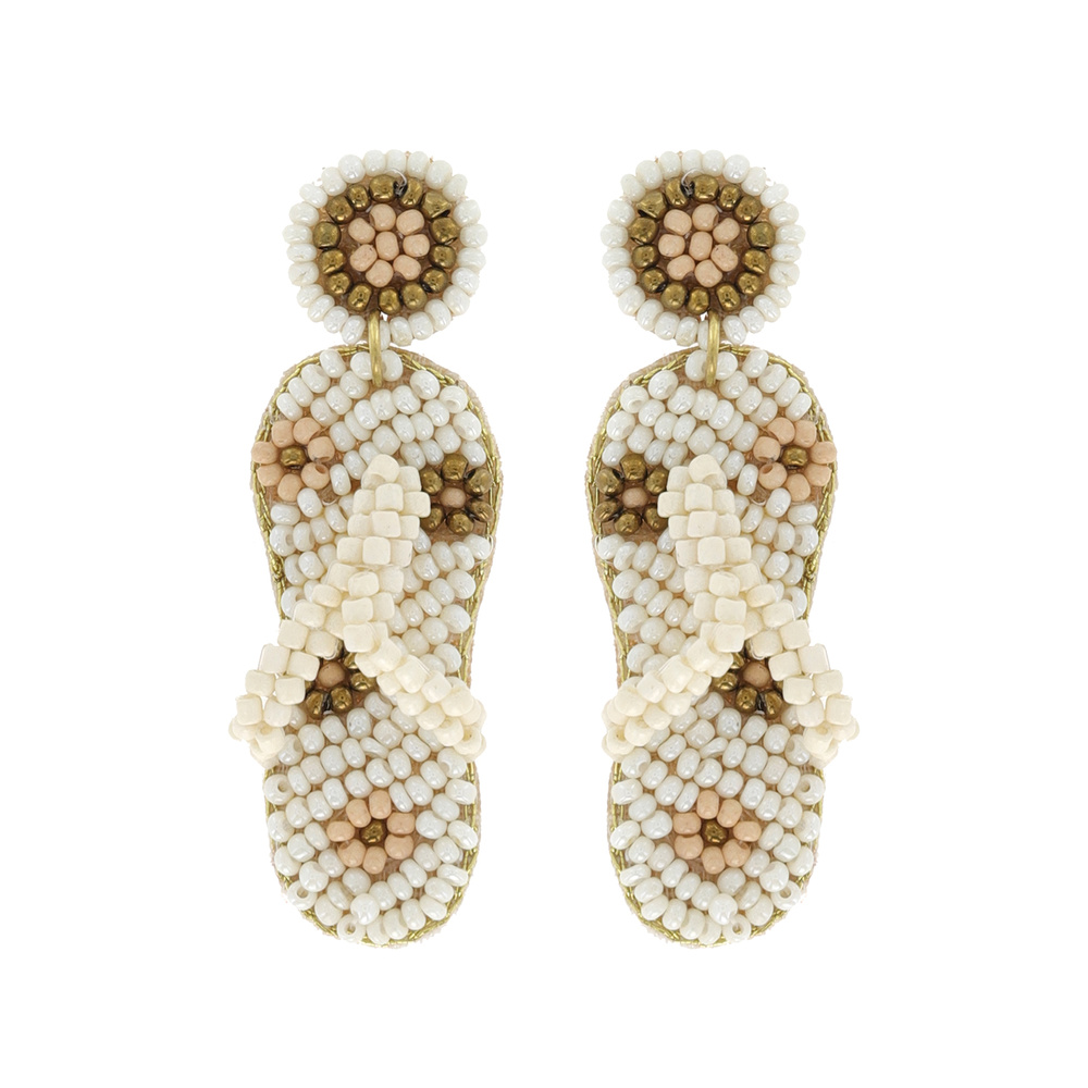 "SUMMER VIBES" SEED BEAD HANDMADE BEADWORK FLORAL SANDAL FLIP FLOP DROP EARRINGS