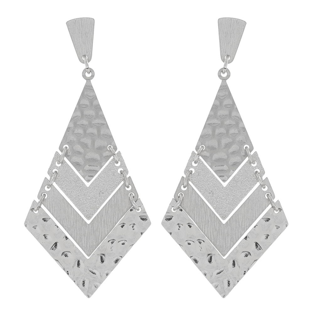 Chevron Boho Hammered Metal Diamond Shaped Dangle And Drop Earrings