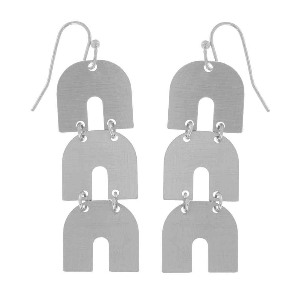 Arch Geometric Boho Brushed Metal Long Drop Earrings