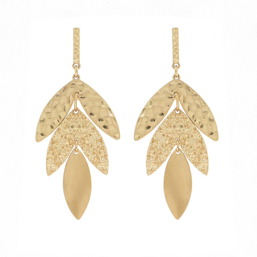 BOHO HAMMERED METAL LEAF DANGLE AND DROP EARRINGS