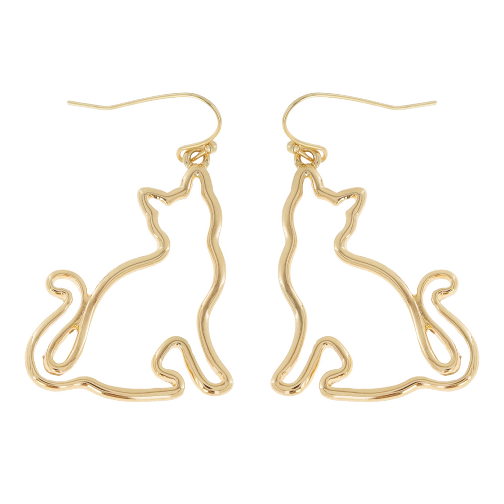 CAT CURLED TAIL CUTOUT DANGLE AND DROP HOOK EARRINGS