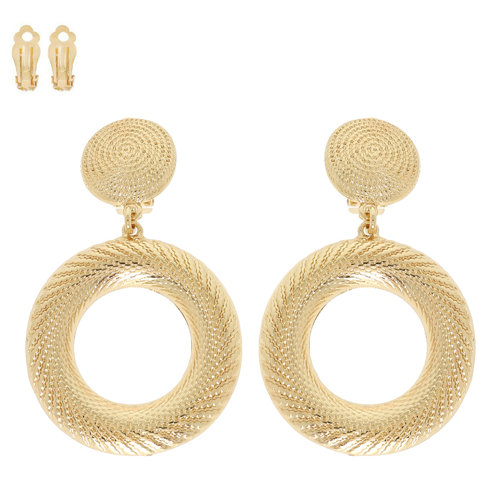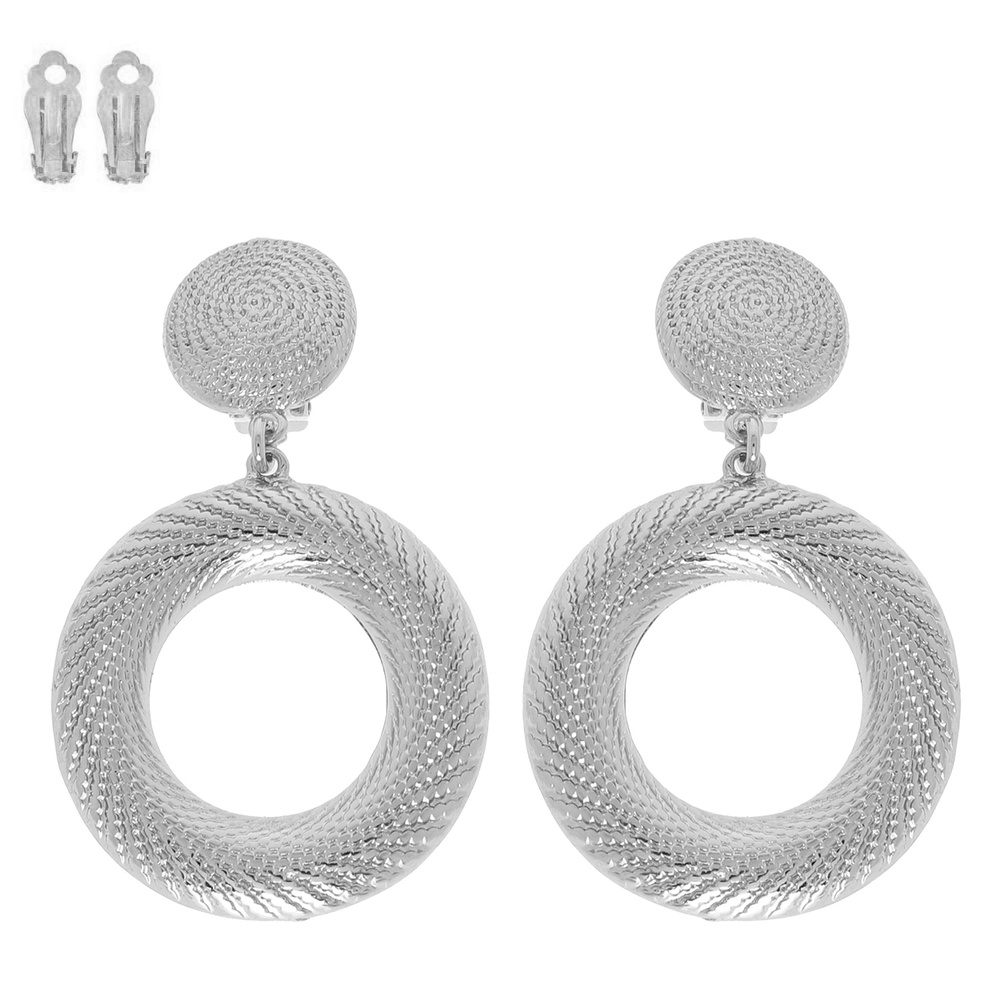 TWO-TIER TEXTURED METALLIC HOOP CLIP ON EARRINGS