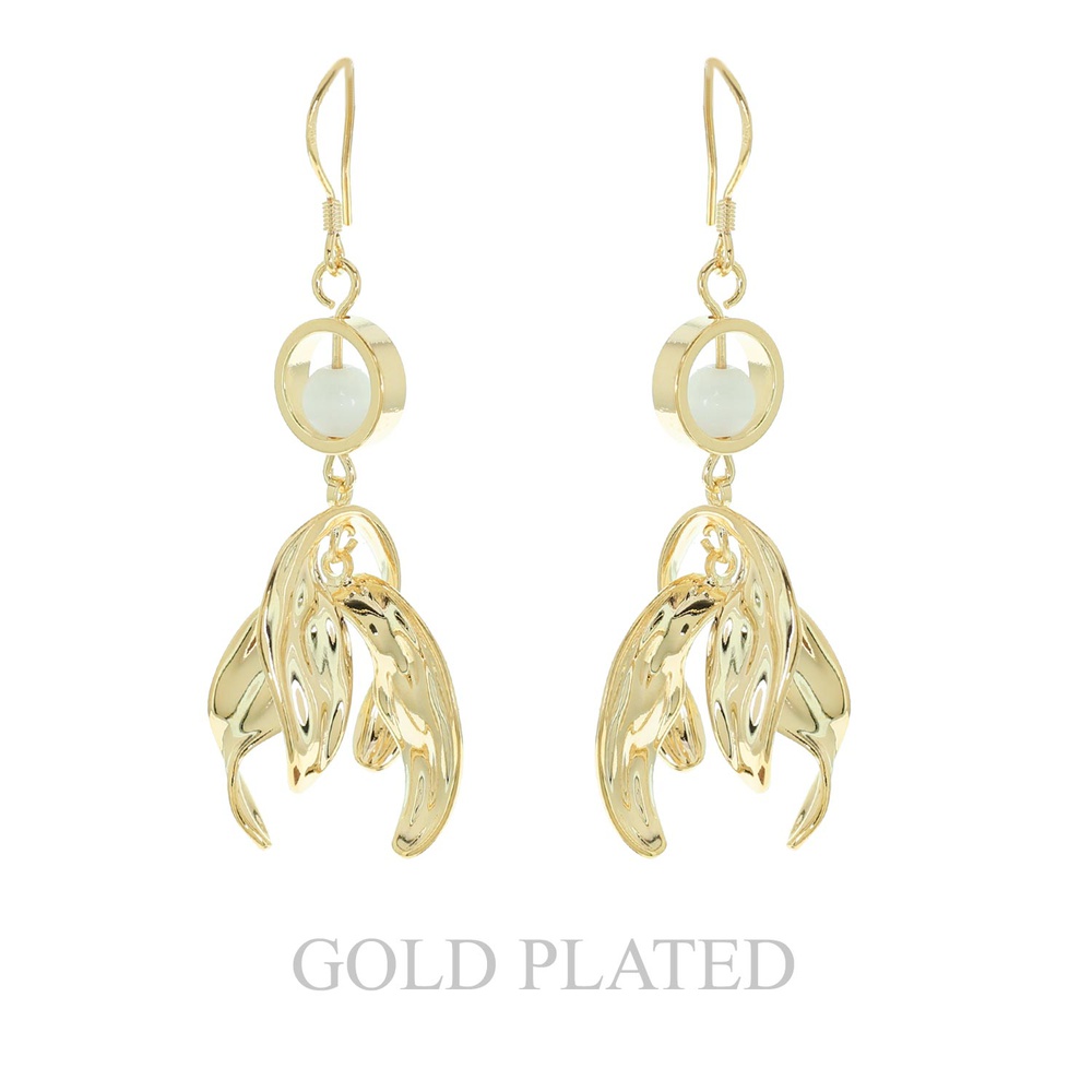 2-TIER GOLD PLATED BEAD PETAL DANGLE AND DROP FISH HOOK EARRINGS
