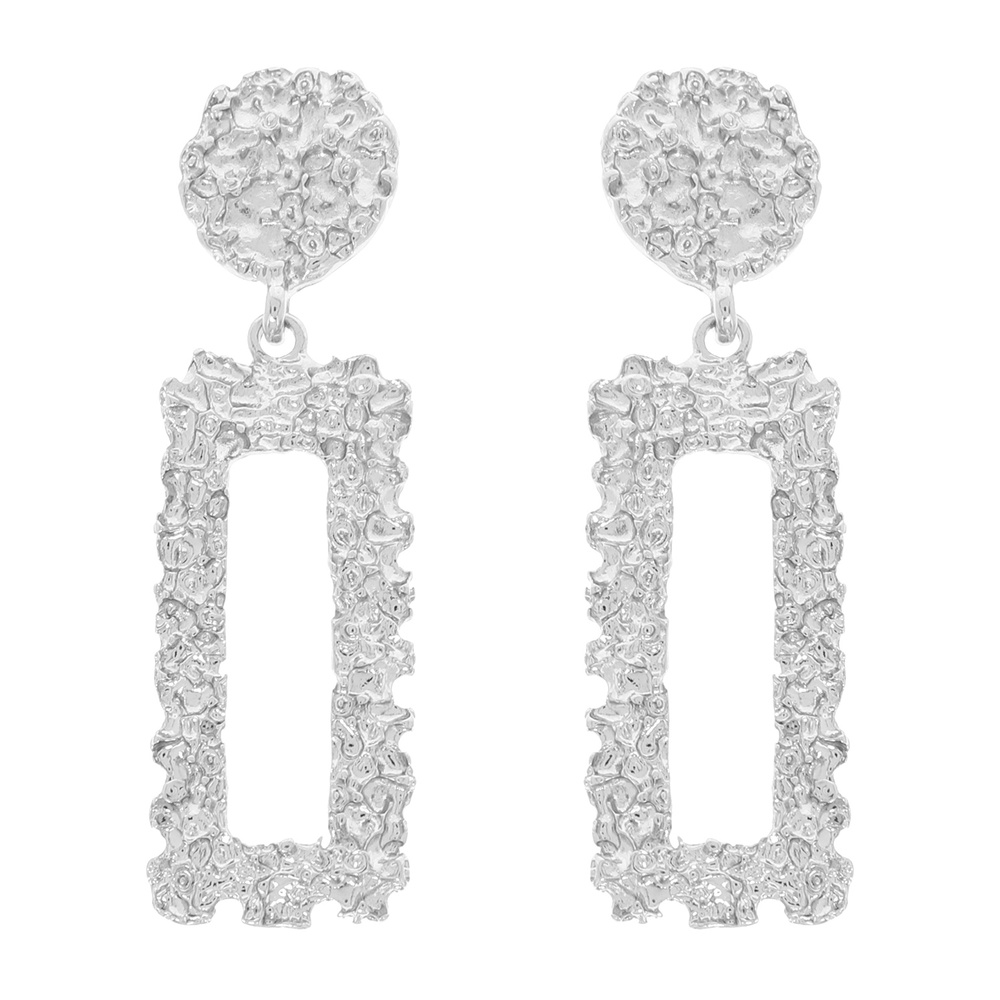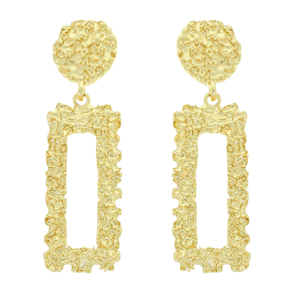 RECTANGLE MALLEABLE TEXTURE DOOR KNOCKER POST DANGLE EARRINGS IN GOLD-TONE METAL