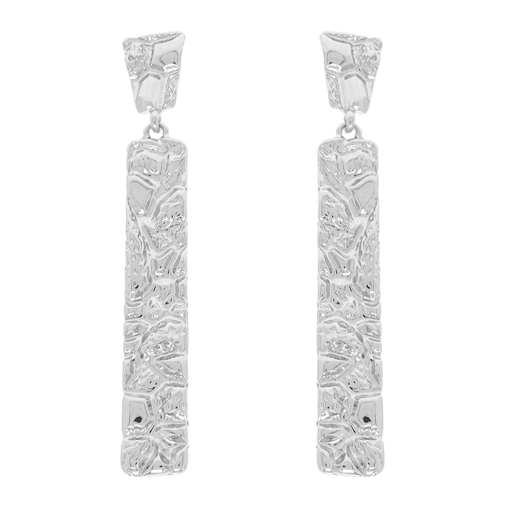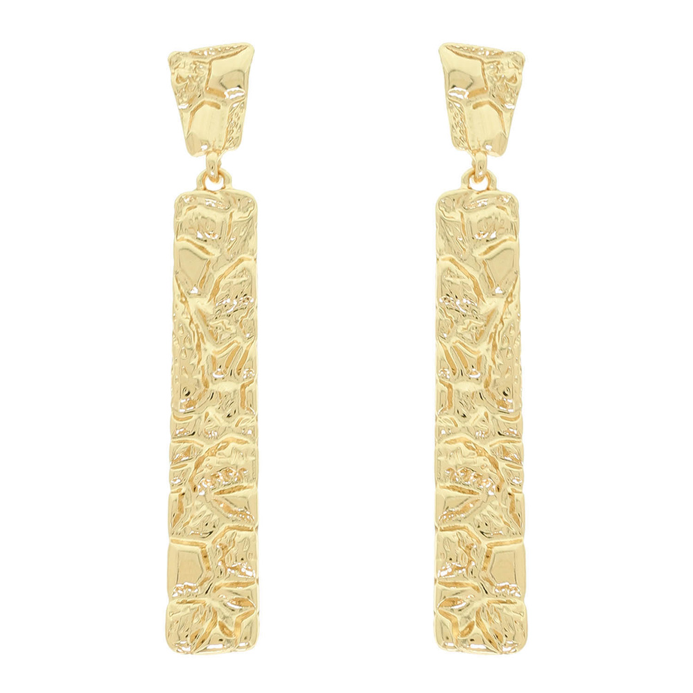 ROUGH FINISH VERTICAL BAR POST DANGLE EARRINGS IN GOLD-TONE METAL