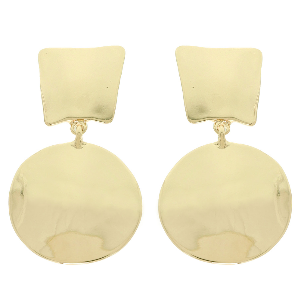 POLISHED FINISH DISC POST DANGLE EARRINGS IN GOLD-TONE METAL