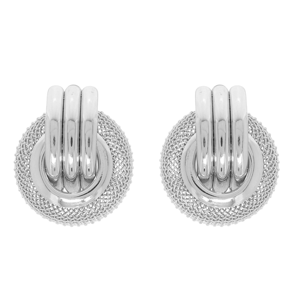 BASKET WEAVE PATTERN BUTTON EARRINGS IN GOLD-TONE METAL