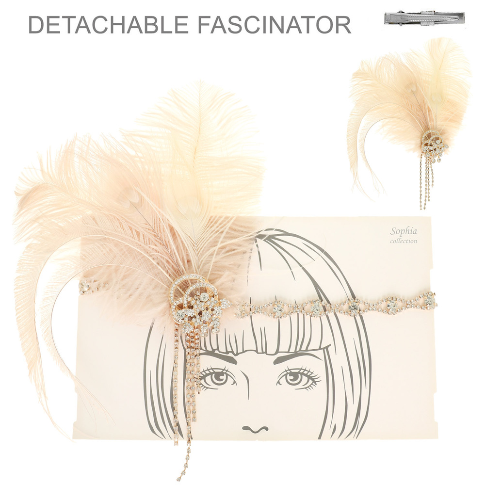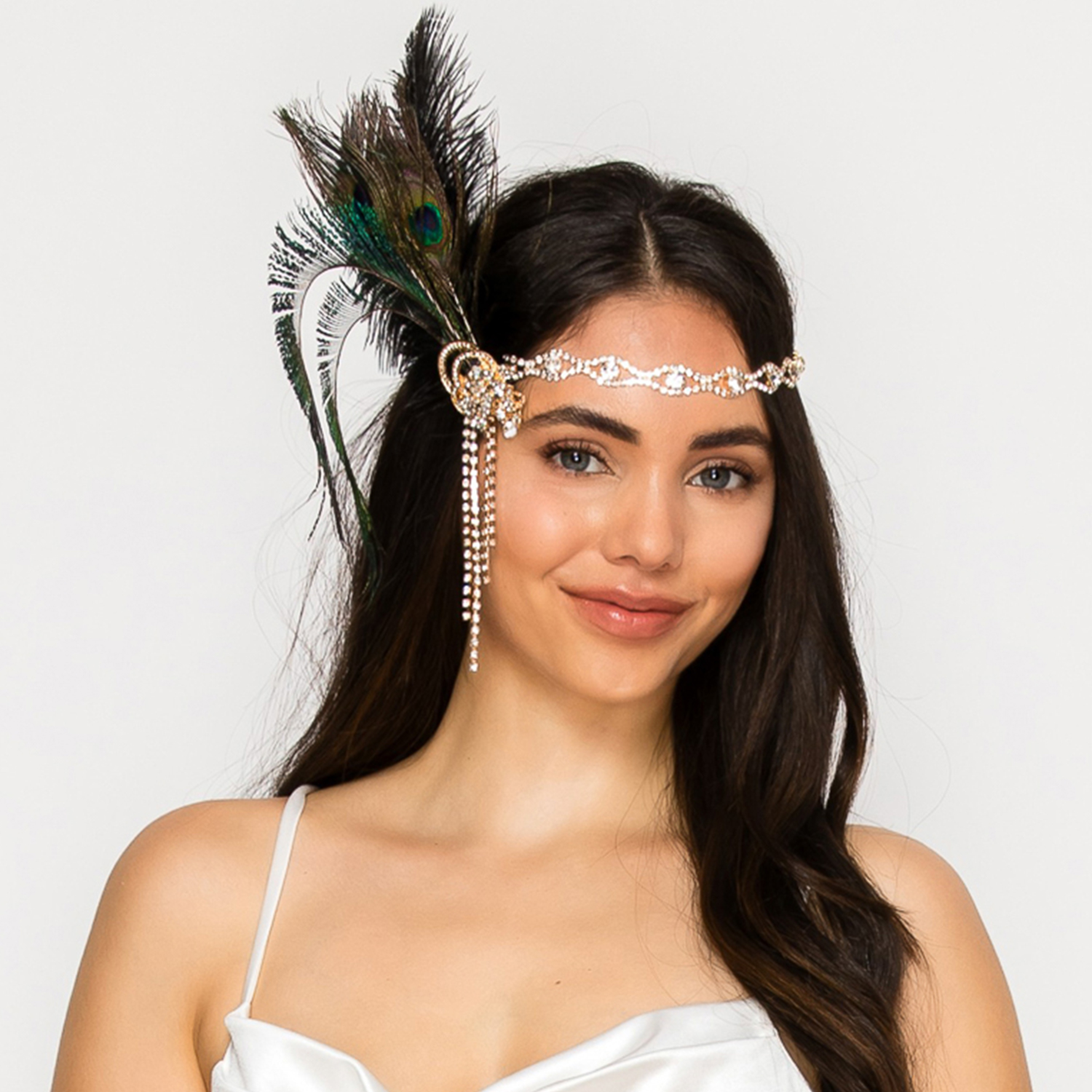 GATSBY 1920S RHINESTONE CRYSTAL PEACOCK FEATHER EMBELLISHED STRETCHABLE HEADBAND