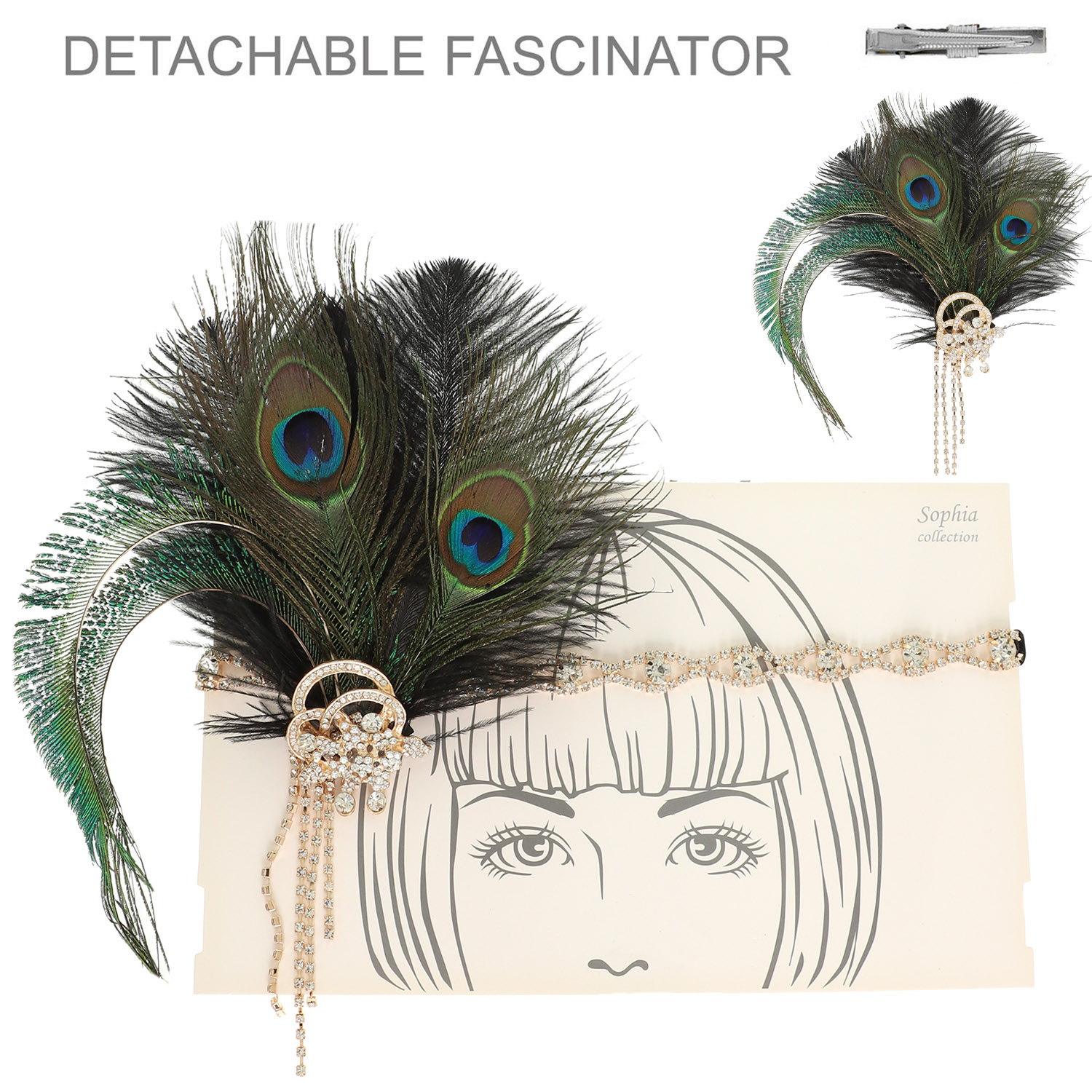 GATSBY 1920S RHINESTONE CRYSTAL PEACOCK FEATHER EMBELLISHED STRETCHABLE HEADBAND