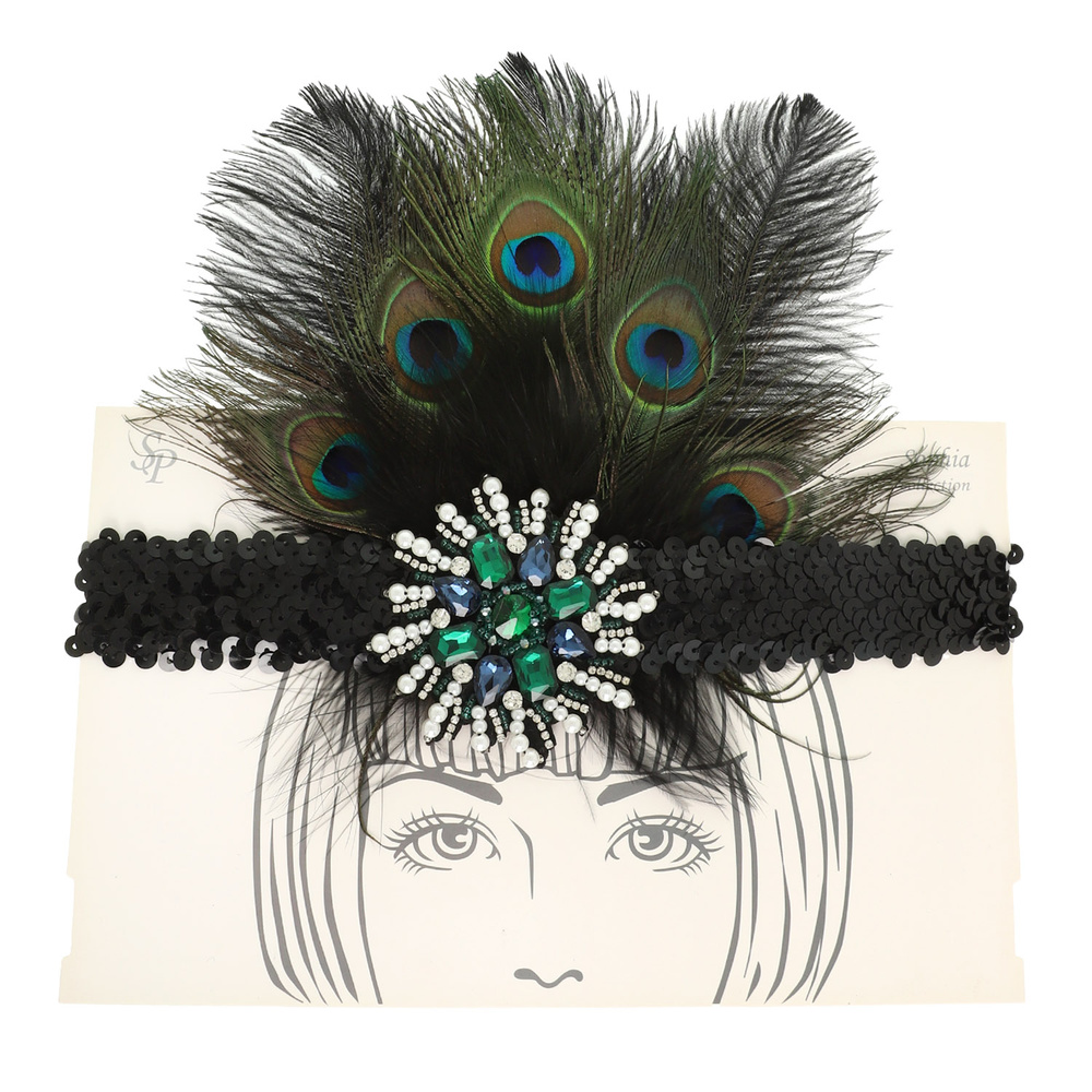 GATSBY 1920S RHINESTONE CRYSTAL PEACOCK FEATHER EMBELLISHED STRETCHABLE HEADBAND