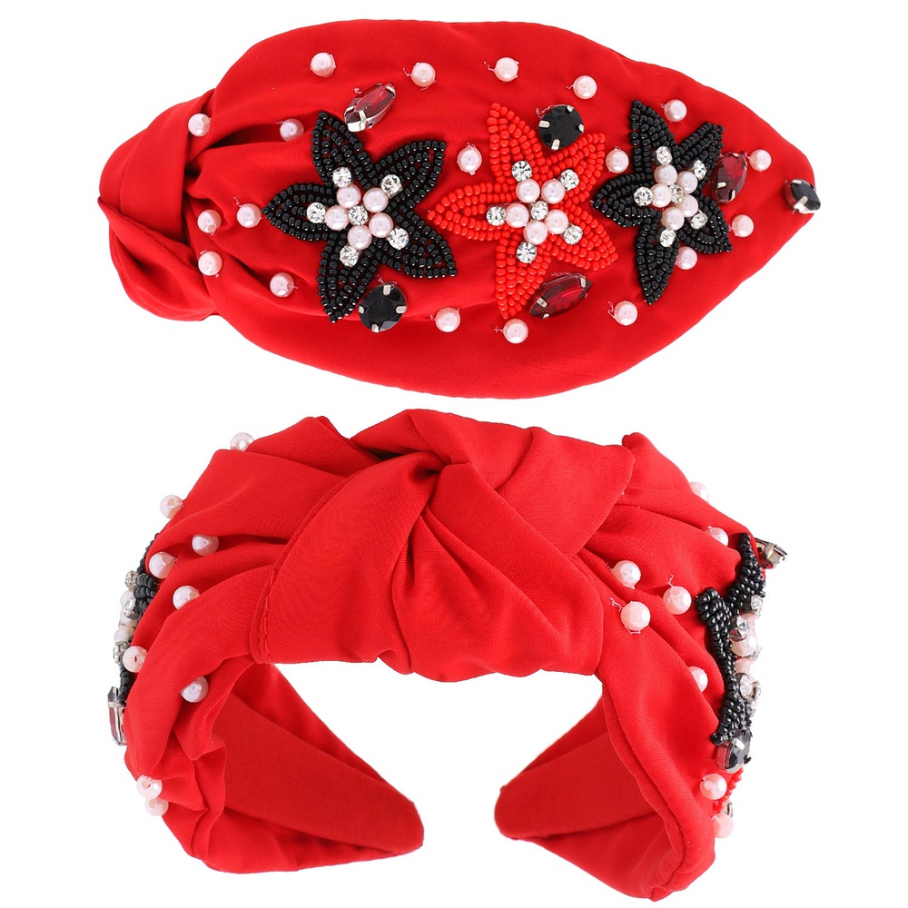 JEWELED BEADED STAR PATTERN KNOTTED CHRISTMAS HEADBAND