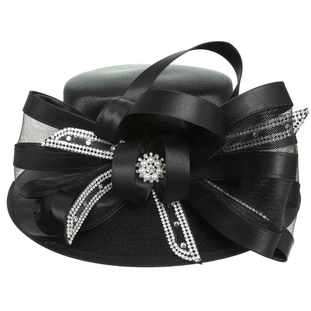 CRYSTAL RHINESTONE PEARL EMBELLISHED LOOPED MESH BOW SATIN BRAID HAT