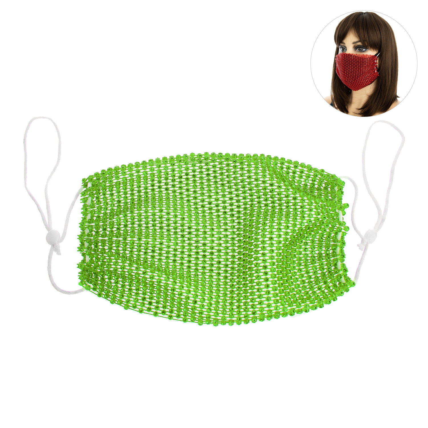 Rhinestone Mesh Mask W/ Adjustable Elastic Ear Strap