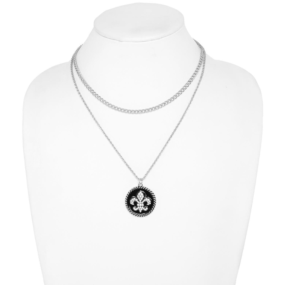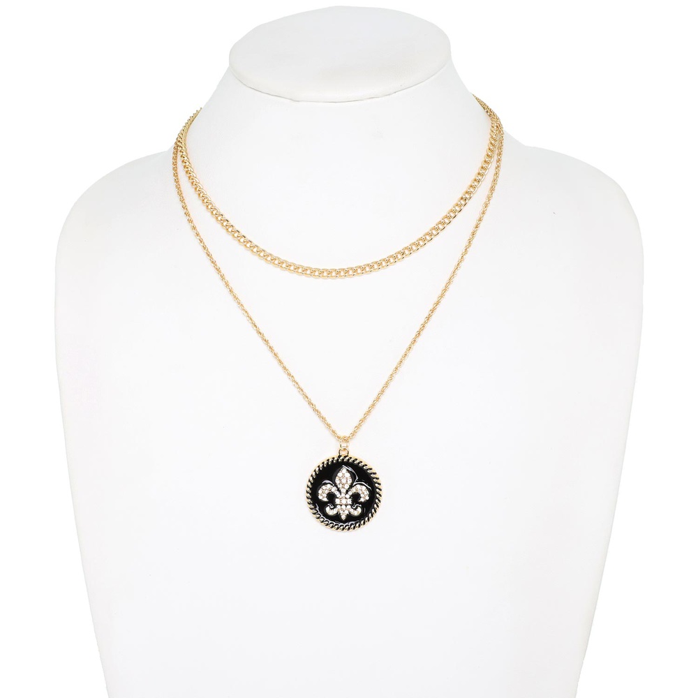 CRYSTAL RHINESTONE PAVE ENAMEL COATED FLEUR DE LIS MULTISTRANDED PENDANT CHAIN NECKLACE