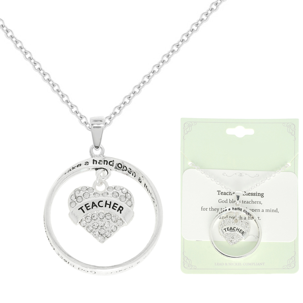 TEACHER'S BLESSING TEACHER APPRECIATION CRYSTAL RHINESTONE PAVE OPEN CIRCLE HEART CHARM ADJUSTABLE PENDANT NECKLACE
