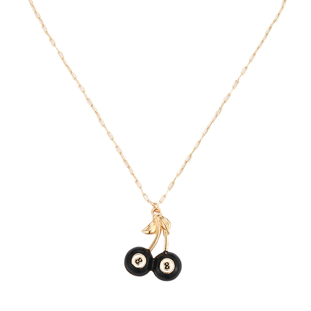 HIGH STAKES THEME ENAMEL 8 BALL CHERRY PENDANT NECLACE IN GOLD TONE METAL