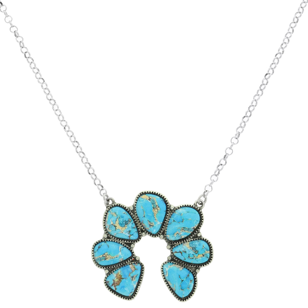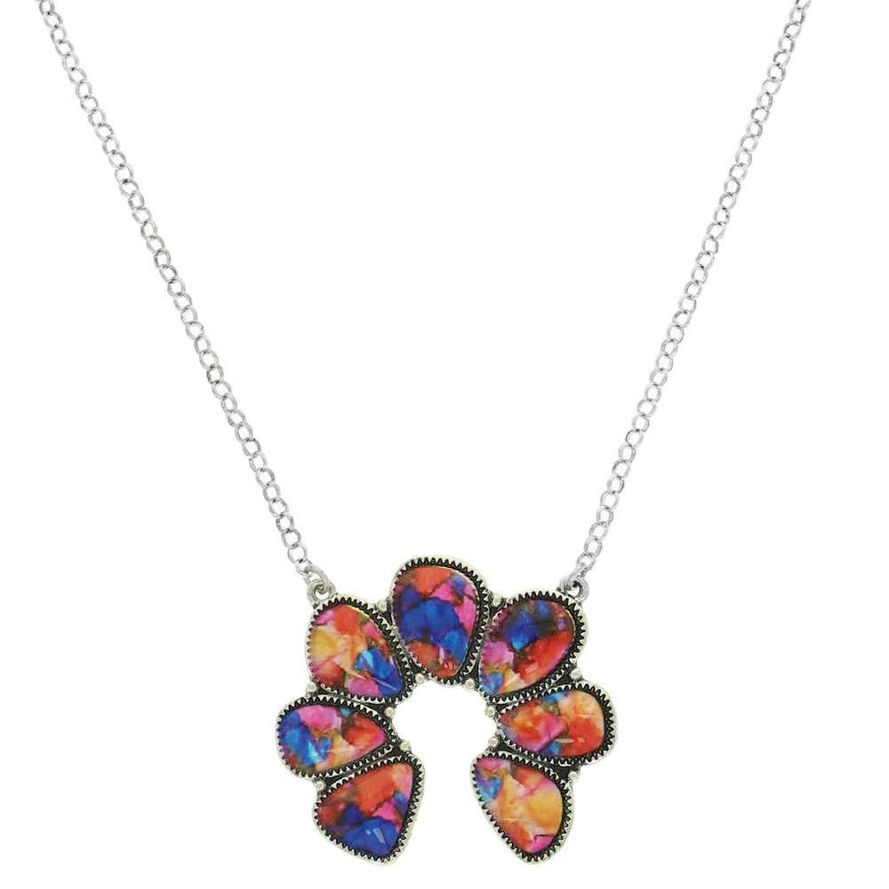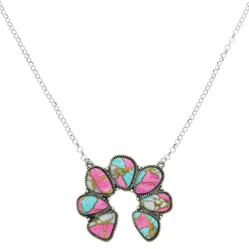 WESTERN STONE SQUASH BLOSSOM PENDANT NECKLACE AVAILABLE IN MULTIPLE COLORS