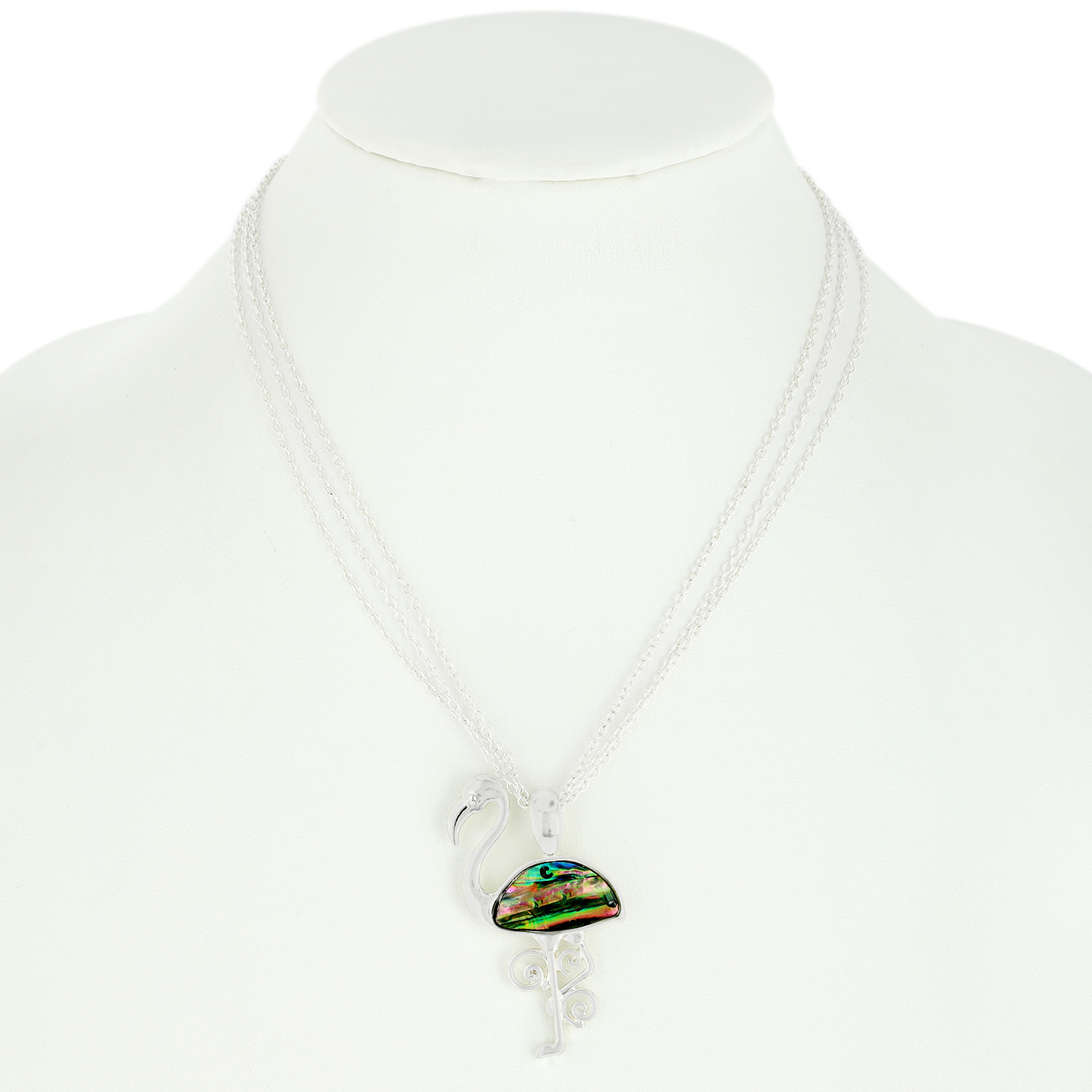 FLAMINGO ABALONE SHELL INLAY PENDANT NECKLACE AND EARRINGS SET