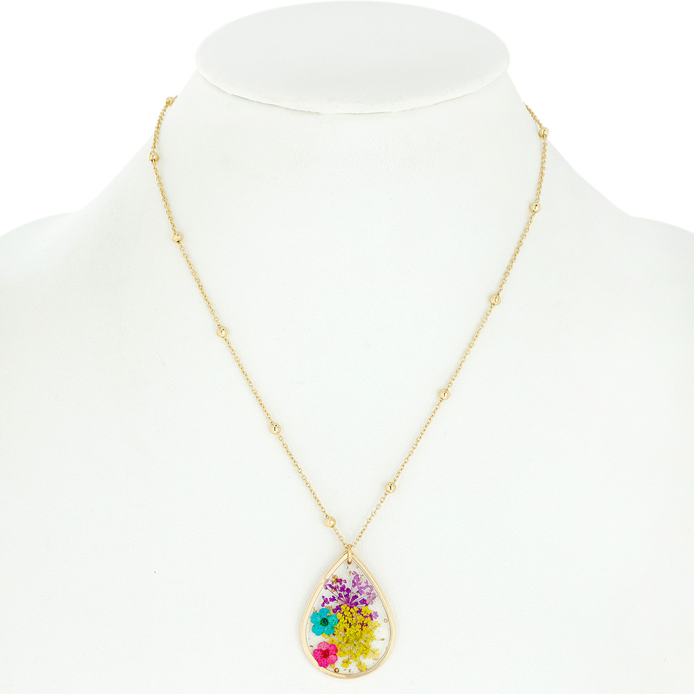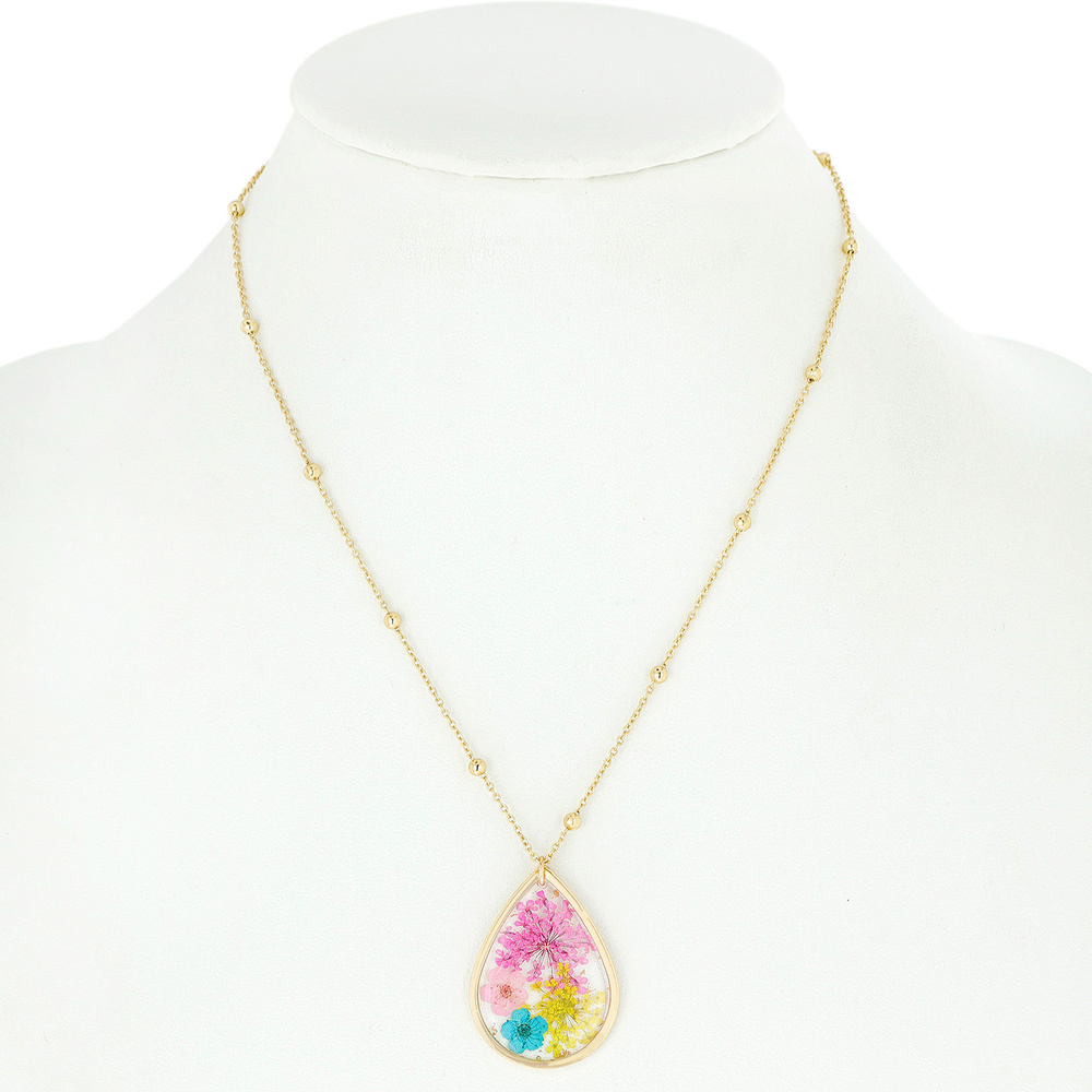 Natural Dried Flower Teardrop Pendant Necklace Resin Floral Jewelry