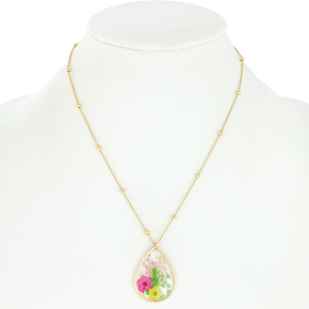 NATURAL DRIED FLOWER TEARDROP PENDANT NECKLACE RESIN FLORAL JEWELRY