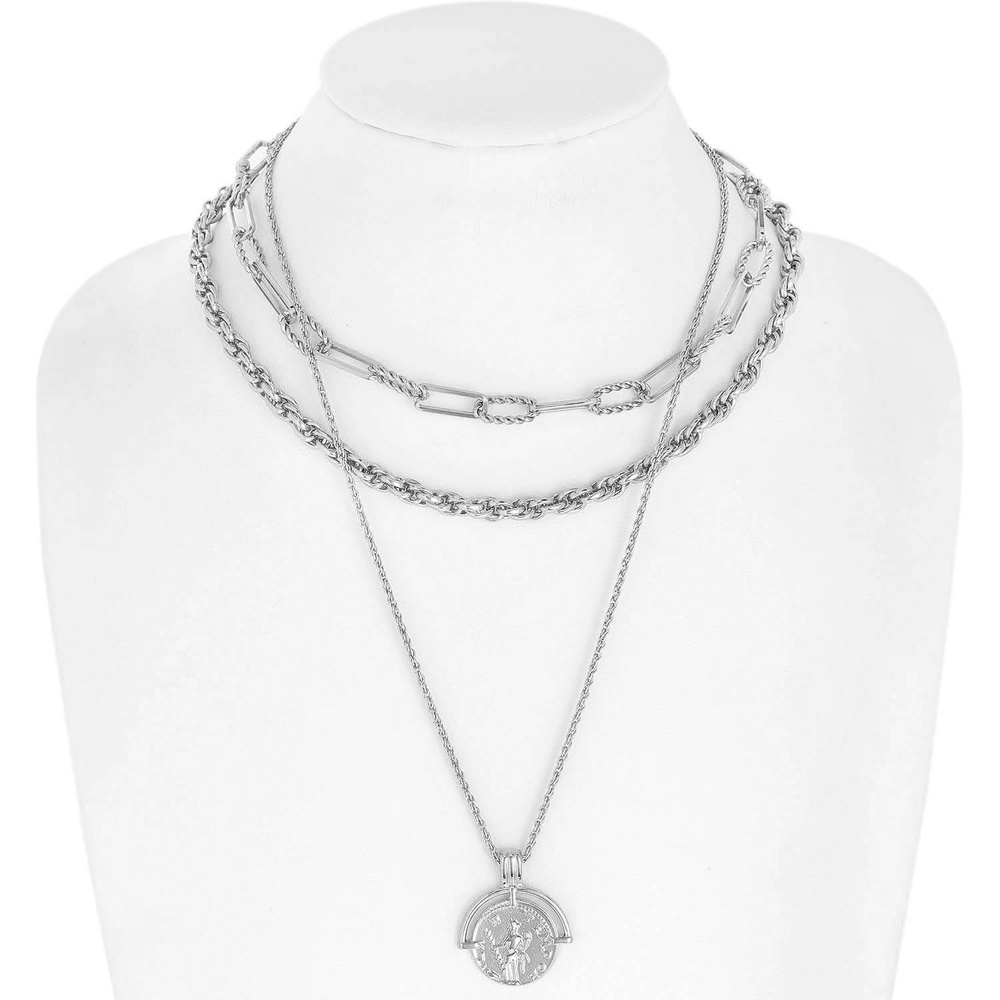 COIN PENDANT MULTI LAYERED CHAIN NECKLACE