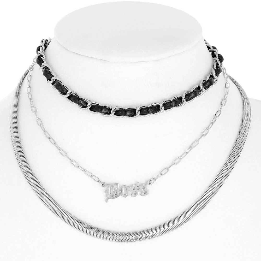 BOSS PENDANT MULTI LAYERED CHAIN CHOKER NECKLACE