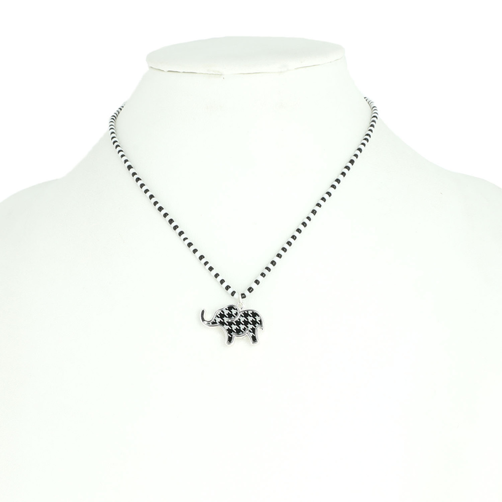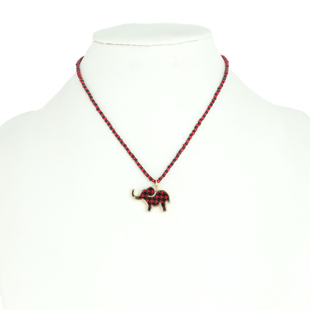 RED AND BLACK HOUNDSTOOTH ELEPHANT PENDANT NECKLACE