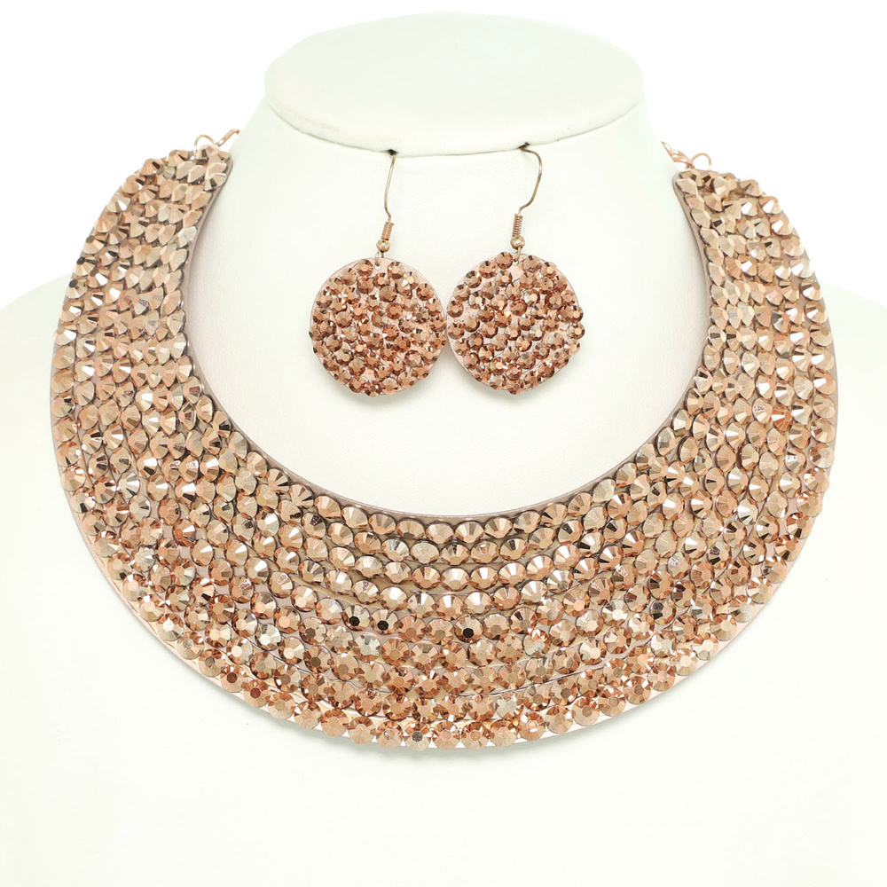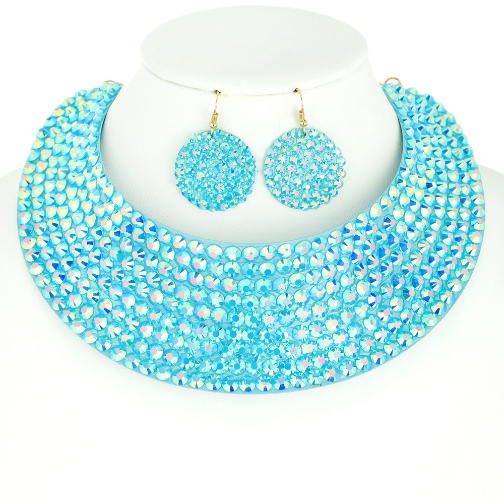GEM STONE NECK BIB COLLAR CHOKER NECKLACE AND EARRINGS SET