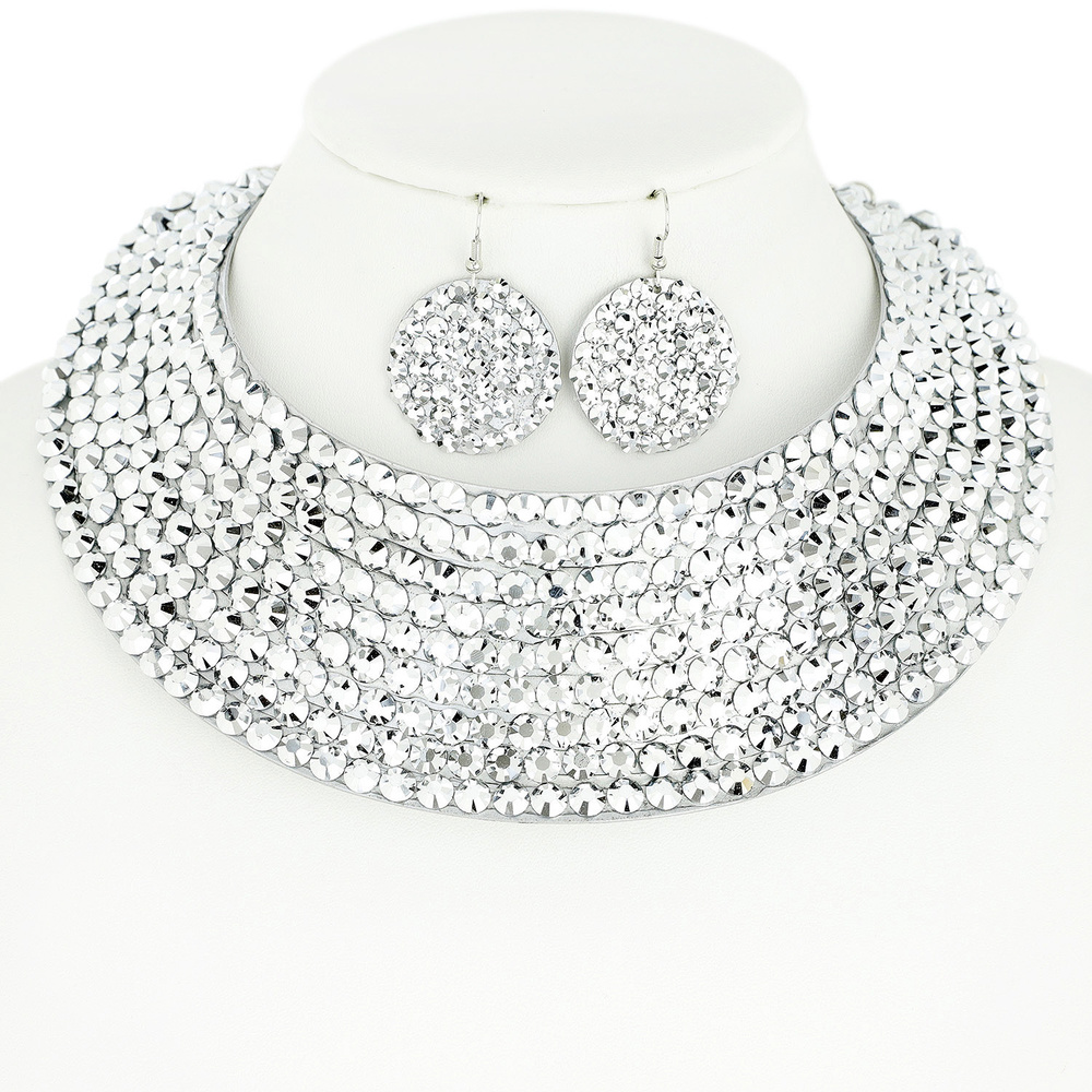 Gem Stone Neck Bib Collar Choker Necklace And Earrings Set