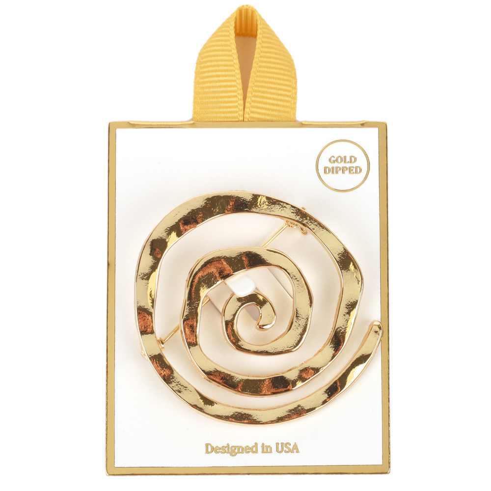 GOLD TONE ABSTRACT SPIRAL SWIRL DESIGN BROOCH PIN