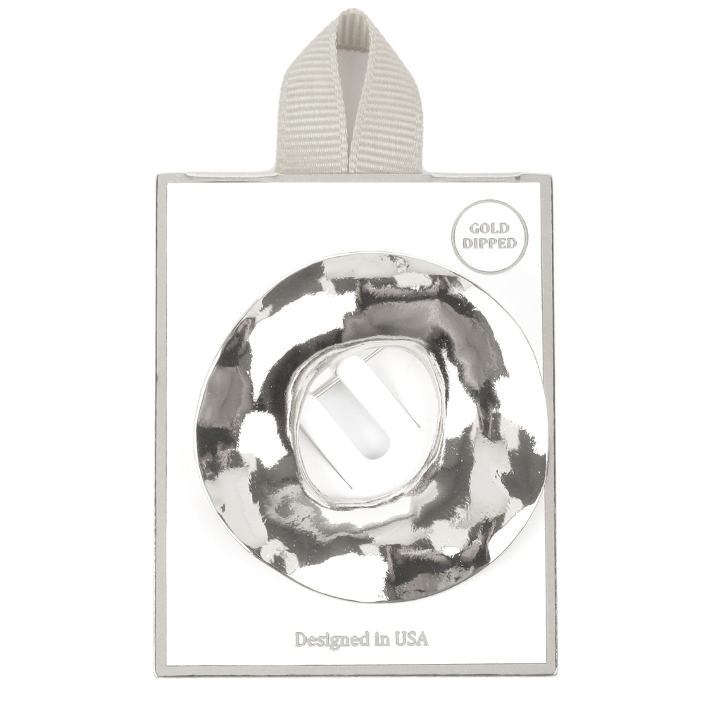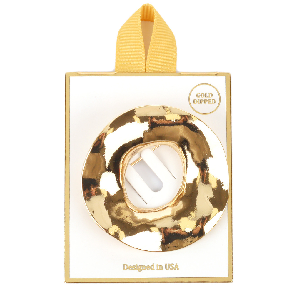 GOLD DIPPED HAMMERED OPEN DISC SHAPE BROOCH PIN IN WHITE TONE METAL