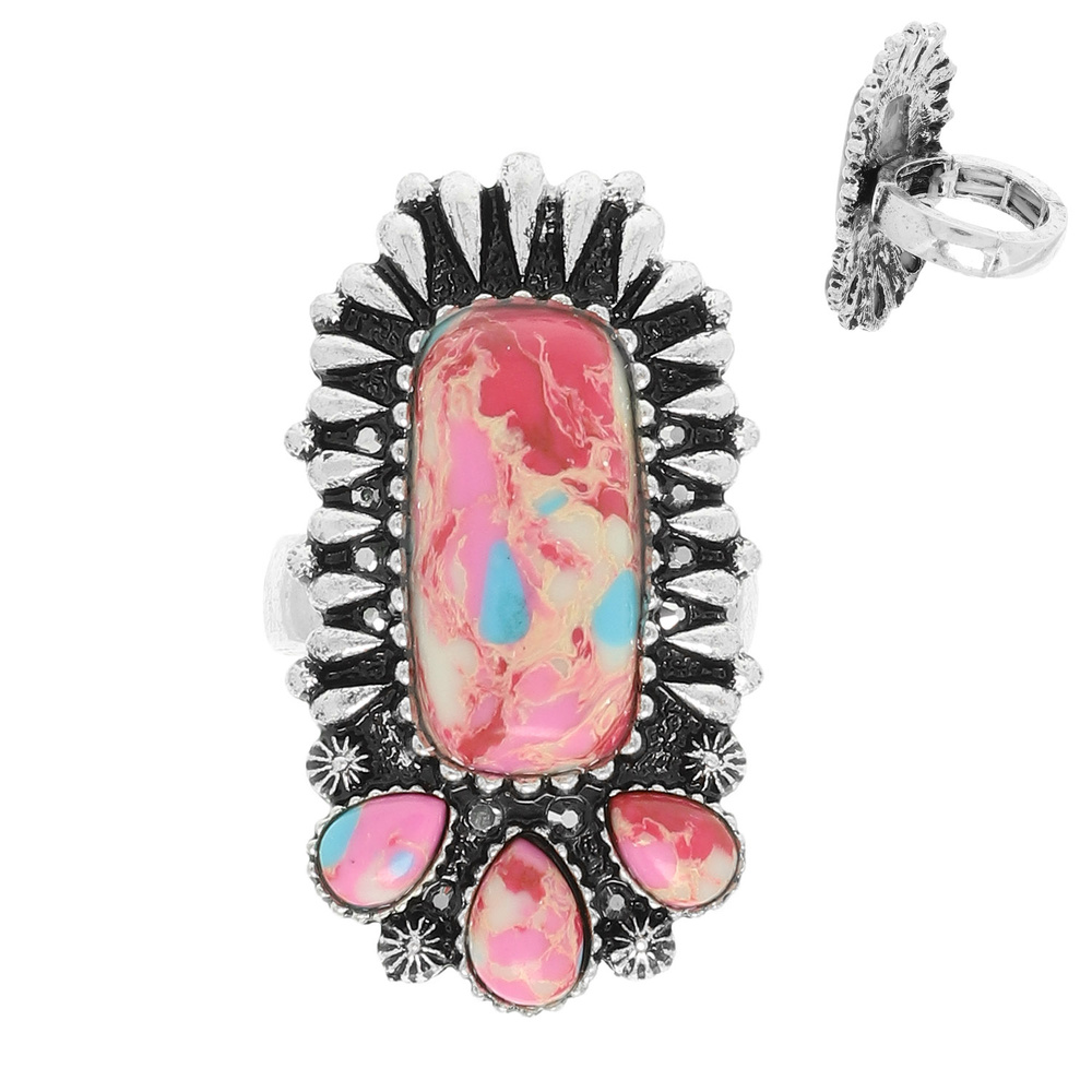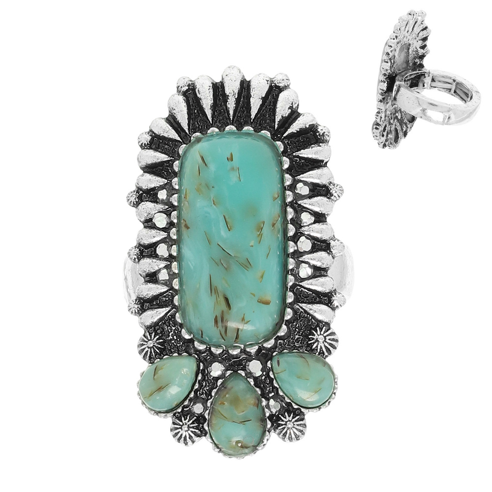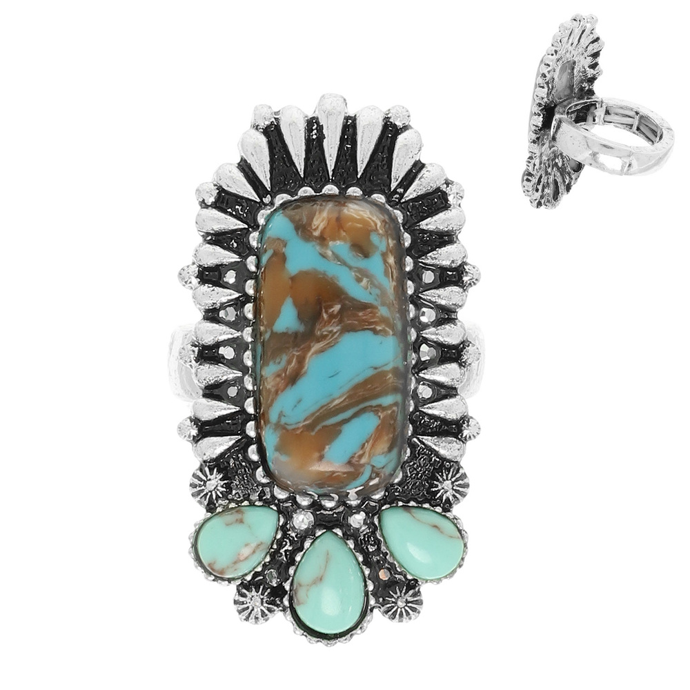 WESTERN MULTICOLOR MULTISHAPE TURQUOISE STRETCH RING WITH DECORATIVE FRAME