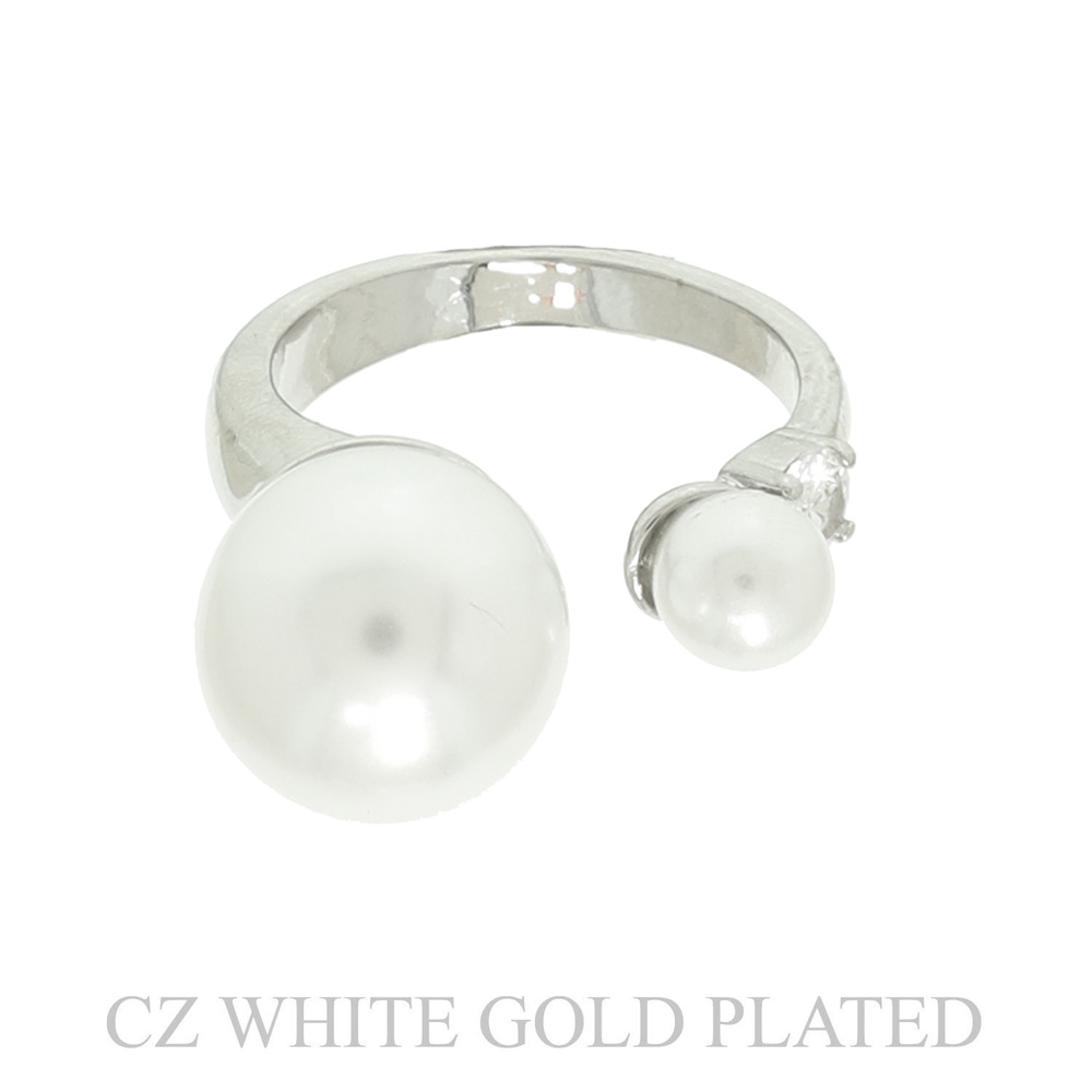 Gold Plated Cz Double Pearl Open Cuff Ring