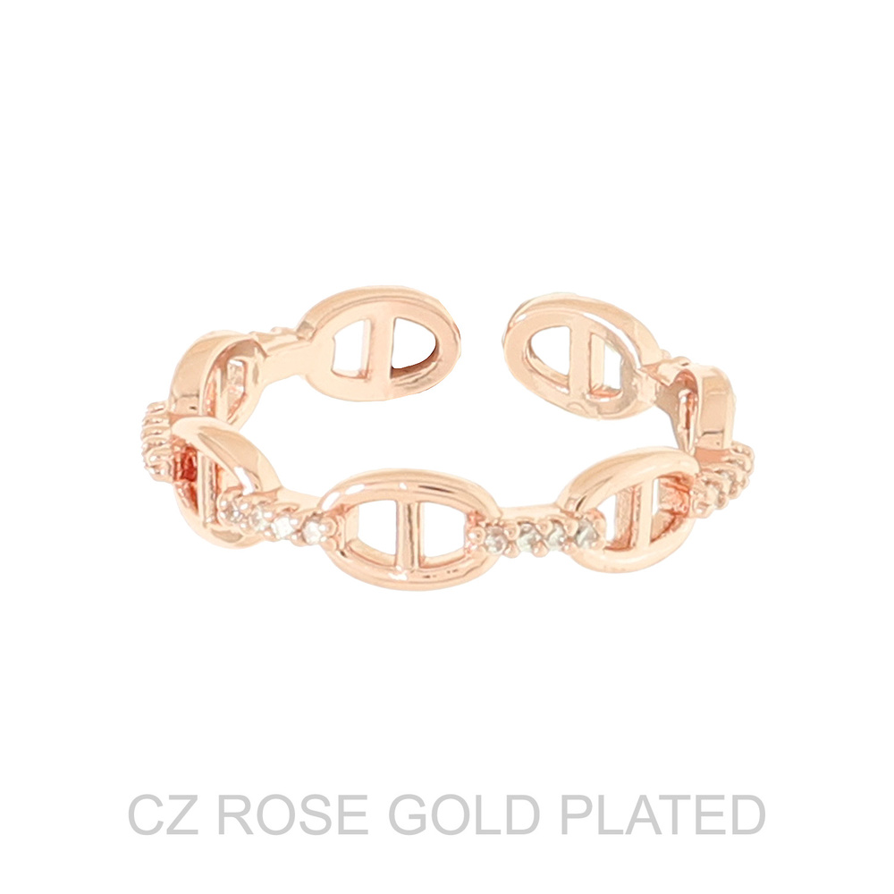 CUBIC ZIRCONIA LINK BAND CUFF RING IN ROSE GOLD PLATTING