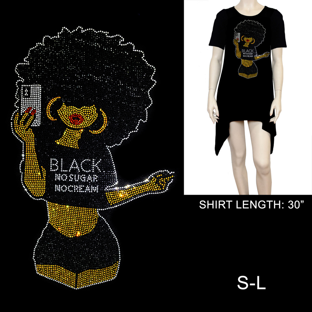 BLACK NO SUGAR NO CREAM RHINESTONE STUDDED HIGH LOW SHORT SLEEVED GRAPHIC T-SHIRT DRESS