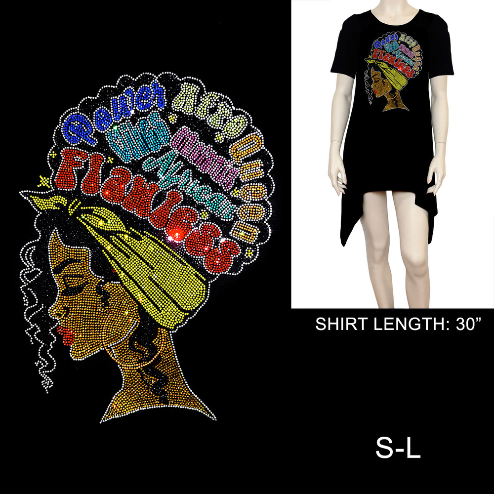 QUEEN RHINESTONE STUDDED HIGH LOW SHORT SLEEVED GRAPHIC T-SHIRT DRESS