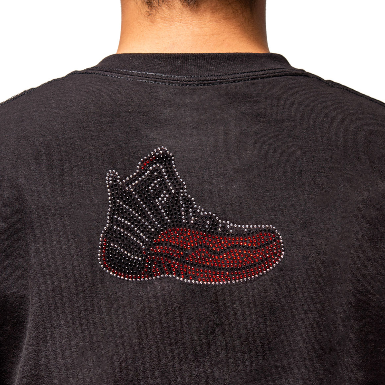 1997 Flu Game Y2k Old School Black Red High Top Basketball Sneakers Crystal Rhinestone Studded Crew Neckline Short Sleeve Graphi