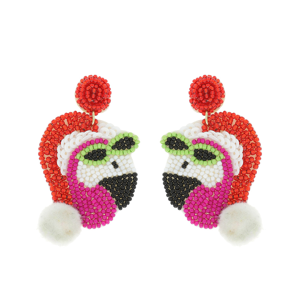 CHRISTMAS FLAMINGO SEED BEAD DANGLE EARRINGS