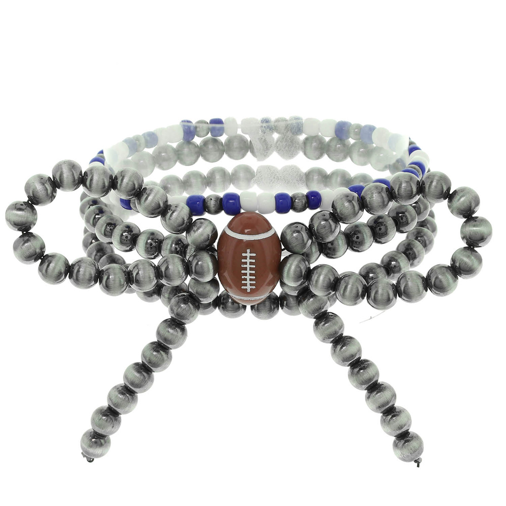 MULTI STRAND STRETCH BRACELET SET WITH TEAM COLOR BEADS AND CENTER FOOTBALL