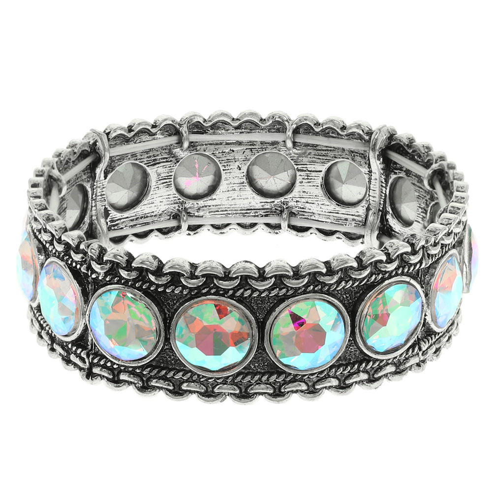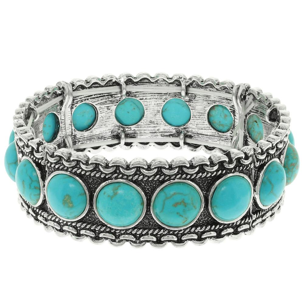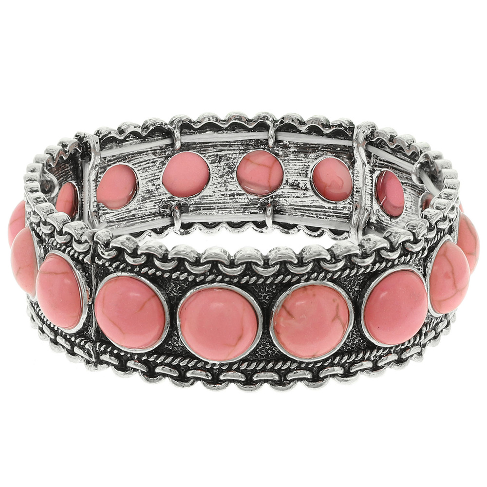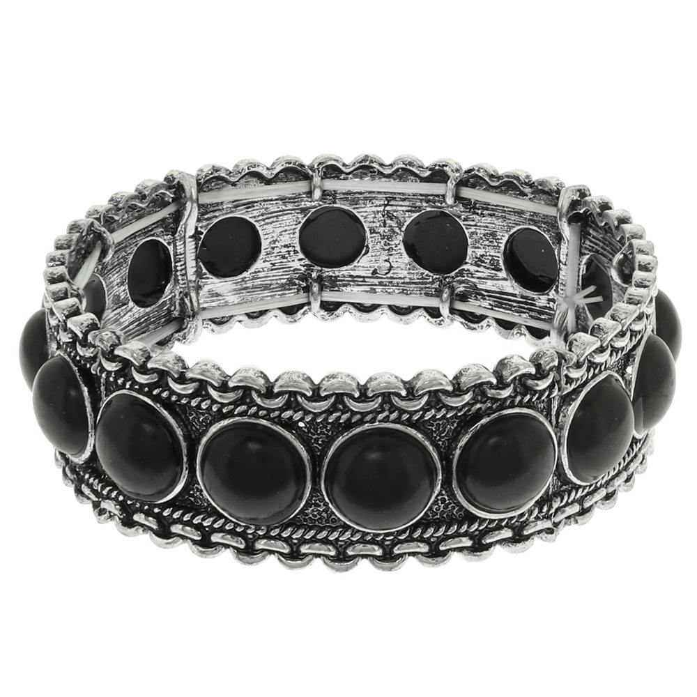 WESTERN BEZEL SET CABOCHON STRETCH BRACELET WITH ORNATE BANDWORK