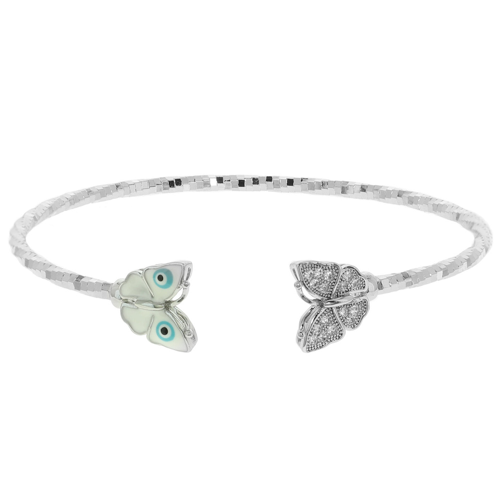 EVIL EYE CUBIC ZIRCONIA BUTTERFLY CUFF BRACELET IN SILVER TONE METAL