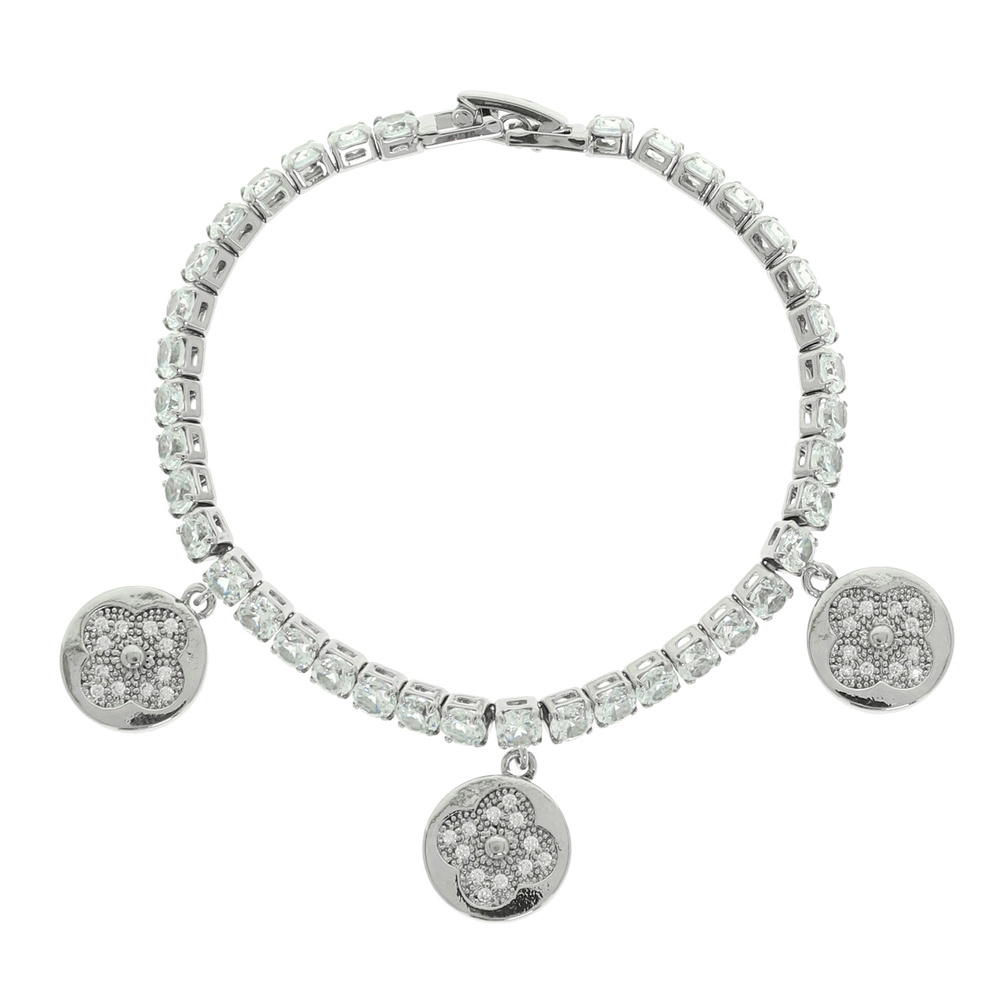Cz Pave Flower Disc Charm Tennis Bracelet