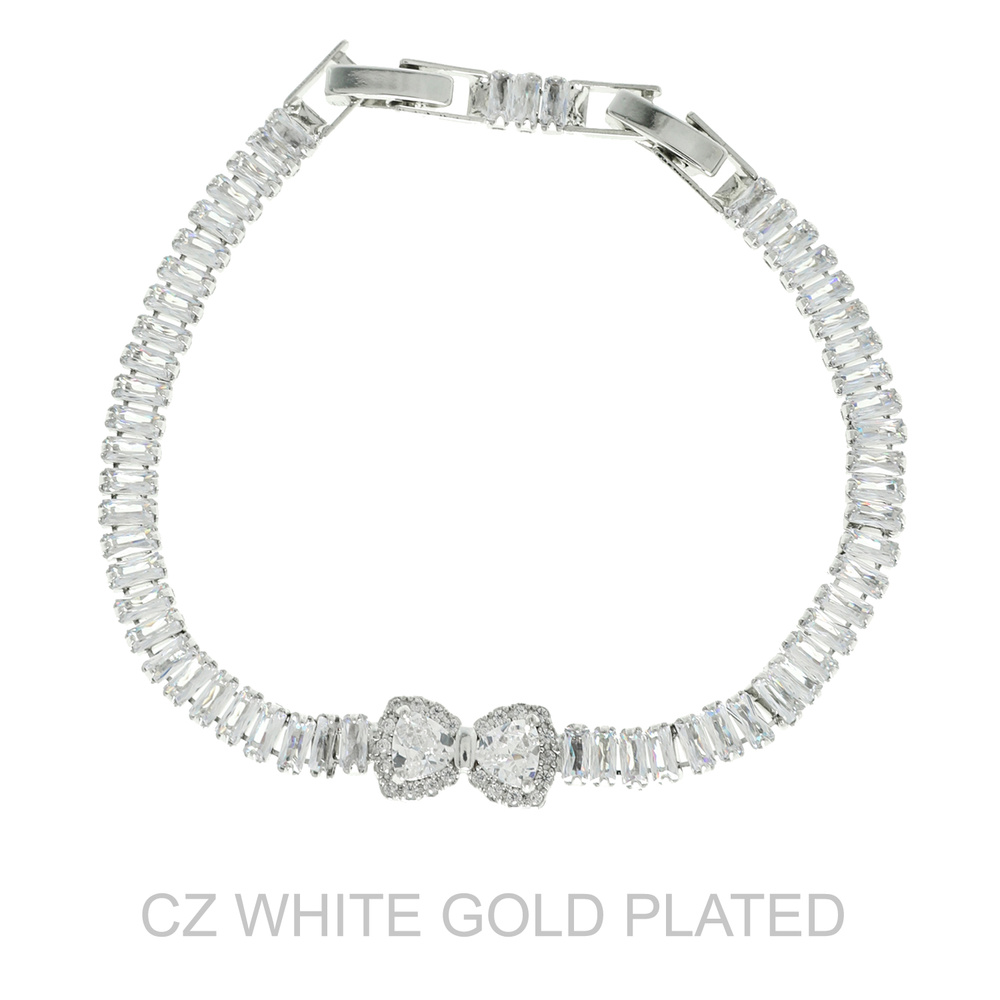 BRIDAL CUBIC ZIRCONIA BAGUETTE CUT BOW TENNIS BRACELET IN WHITE GOLD PLATTING